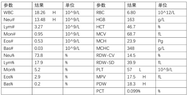 In the analysis of formed elements, platelets were almost zero, and there was severe consumption of surface platelets. Bleeding factors were the primary consideration. Morphological examination and image verification confirmed the absence of platelets.