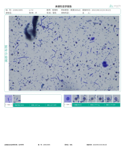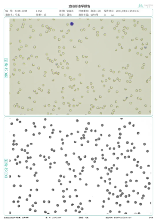 1. Gastrointestinal bleeding in the affected dog: Combined with the dog's history of black stool, decreased platelet count, increased platelet aggregation, and the discovery of a large number of red blood cells in the fecal examination and morphological examination using a fecal analyzer, it indicates that the dog has gastrointestinal bleeding.